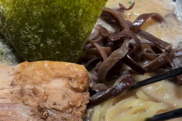 ふっくらと焚き上げた自家製チャーシューを、仕上げに炭火で香ばしく焼き上げ、甘辛の照りダレをたっぷりと絡めた「ミニチャーシュー丼(250円)」。外は香ばしく、中は驚くほどやわらかな食感がクセになる一杯です。ラーメンの余韻を受け止める、締めにちょうどいい満足感で、もう一つの名物として親しまれています。
