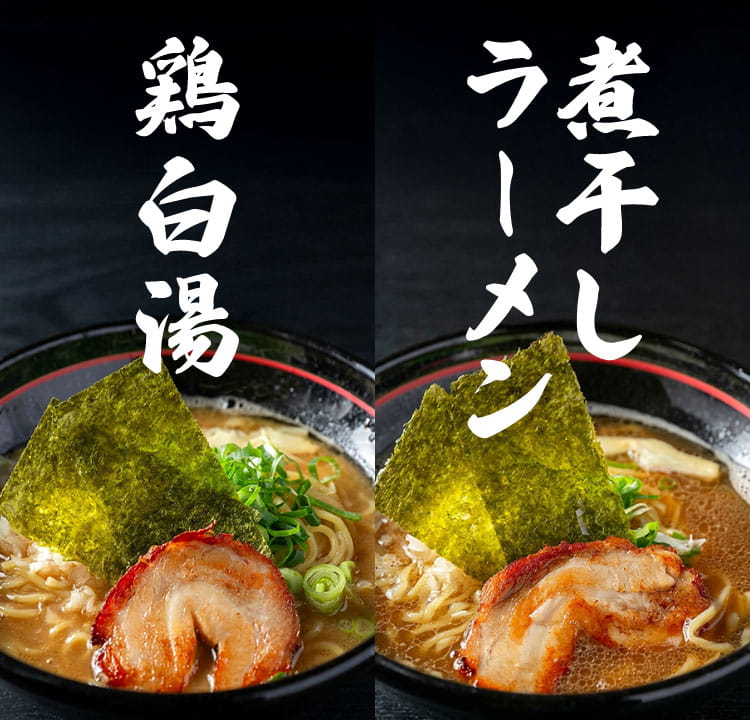 名物は「鶏白湯」と「濃厚煮干し鶏そば」。鶏のコクと旨味をしっかりと味わえる、コラーゲンたっぷりのこってりとした極上の味わいが魅力の「極上鶏白湯そば(950円)」。季節ごとに厳選した国産カタクチ鰯の煮干しに、京都から取り寄せた鯖・ウルメ・鰯の節をブレンドし、じっくりと出汁をとった、煮干しの風味たっぷりの「煮干し中華そば(900円)」。この2大名物をベースに、さまざまな味の展開もお楽しみいただけます。
