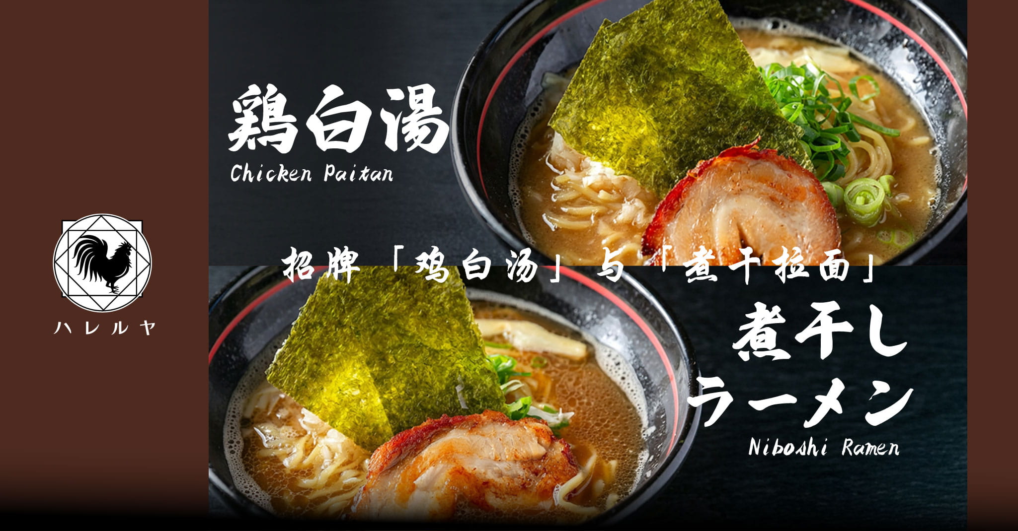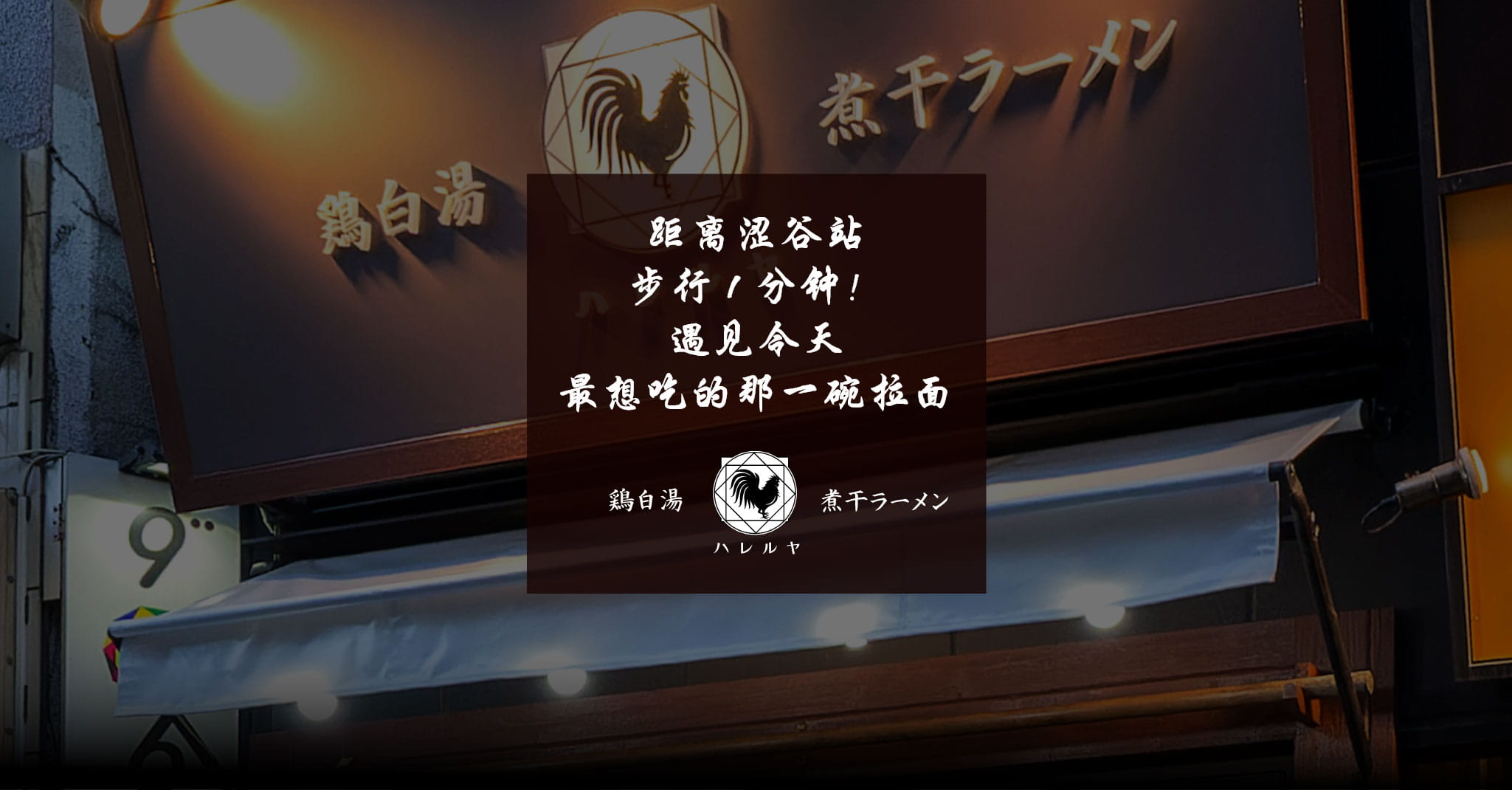 从涩谷站 C2 出口步行 1 分钟。2025 年 12 月 17 日,「鸡白汤&煮干拉面 哈雷路亚」离开深受喜爱的青山通,迁址至涩谷站旁重新开幕。浓厚且富含胶原蛋白的鸡白汤,以及融合全国严选煮干与柴鱼片旨味的汤头,口感醇厚却温润顺口,让人每天都想来一碗。店内提供多种可依面条与吃法变化来享受的拉面选择。欢迎在哈雷路亚,找到最符合今日心情的一碗拉面。